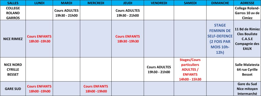 Nos Salles de Krav Maga sur Nice Nous Contacter Dossier d'inscription Toutes nos salles sur Nice Votre abonnement vous donne accès à toutes nos salles.Cours d’essai GRATUITCours tous les soirsInscription possible toute l’année Notre Club Champion de France & Vainqueur de l’Open de France Vice Champion d’Europe Vice Champion du Monde Nous Contacter En Savoir +